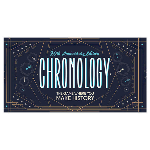 In Chronology, each player builds his or her own timeline of cards. On your turn, someone will read you a historical event from a card. You decide where that event falls in your timeline. If you are right, you keep the card and your timeline grows. The first player to build a timeline of 10 cards wins!