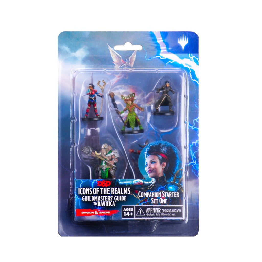 The D&D Icons of the Realms Guildmasters' Guide to Ravnica Companion Starter Set One contains five new heroes for your adventures, each representing one of the ten Ravnican Guilds. Players can combine this with the Guildmasters' Guide to Ravnica Companion Starter Set Two (SKU: 73116) to own a miniature representing each of the ten Guilds.