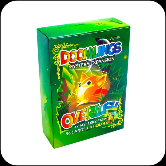 Discover the jungles of Enderas with the Doomlings: Overlush Mystery Expansion! One box contains 4x mystery packs, each with 14 game cards + 1 collectible holofoil, for a total of 60 cards.