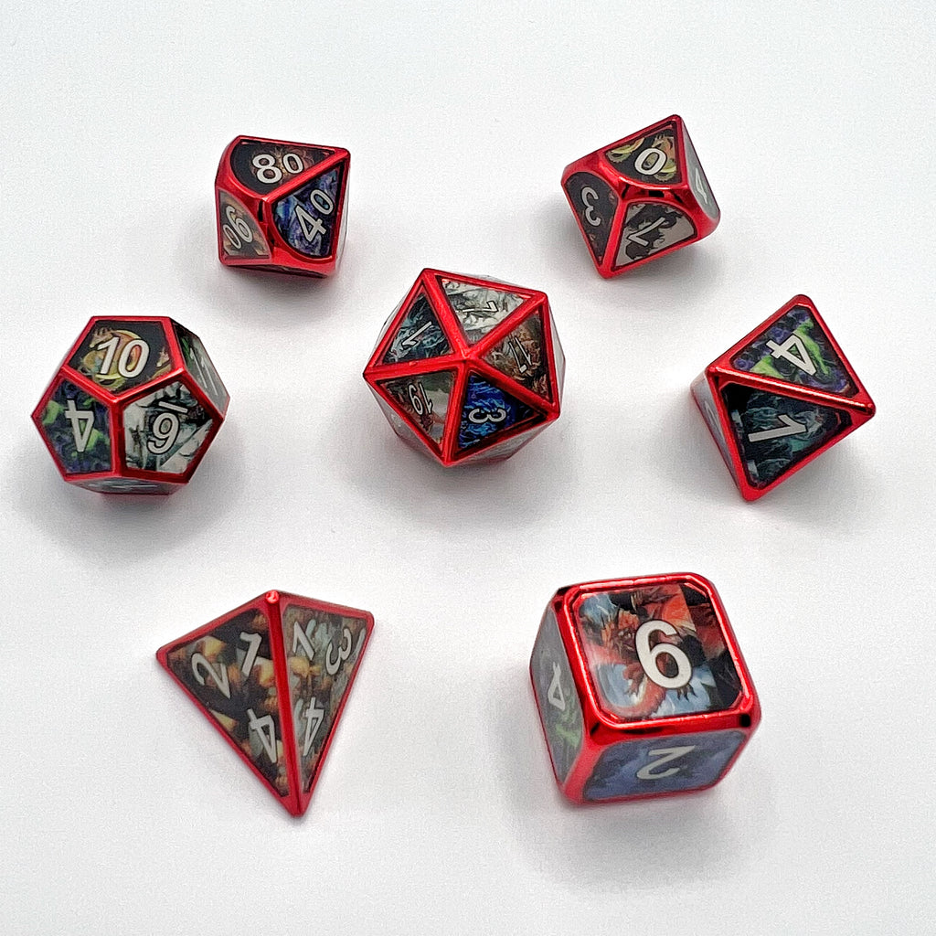 Dragon Picture Metal Dice Set - Shiny Red