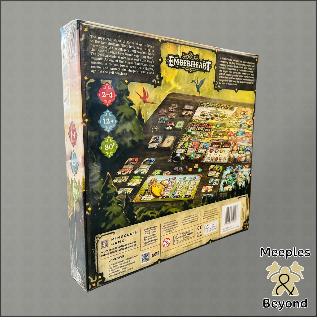 Emberheart is a quick-playing, medium-weight worker placement game . As one of the King’s Champions, your task is to recruit heroes, rescue dragons and expand their preserves, train your own dragon companion, and oppose the roaming poachers.