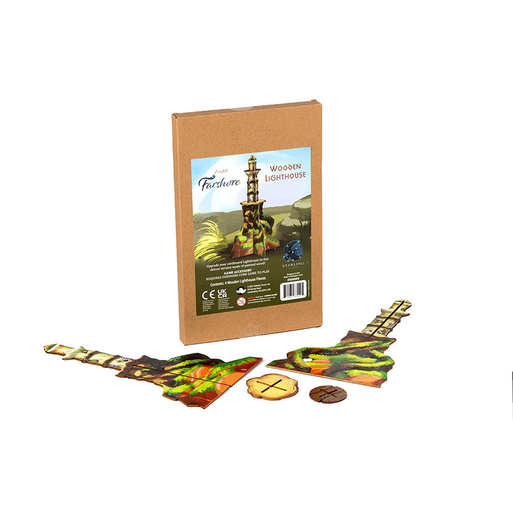 Upgrade your Everdell Farshore game by replacing your cardboard lighthouse with this one made of painted wood.