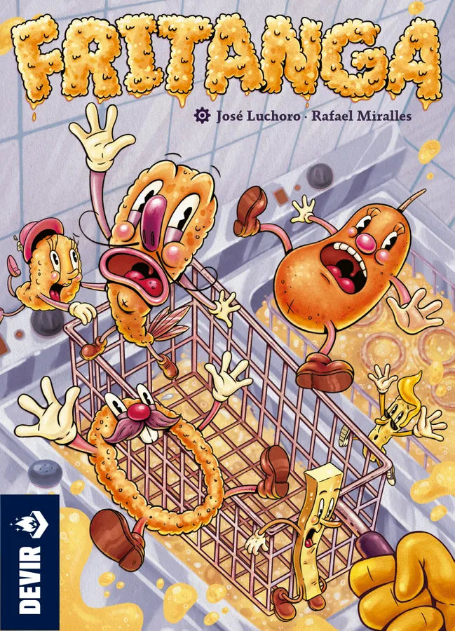 Set in the Blind Business universe, Fritanga is a game for cooking lovers where the playing area is...a fryer! Players take control of various foods and try to survive at all costs, jumping from one side of the fryer basket to the other. When a player cannot move, they fall into the boiling oil, being fried, and (unfortunately) eliminated from the game. You must use all the cards you collect to survive and not become deliciously battered.
