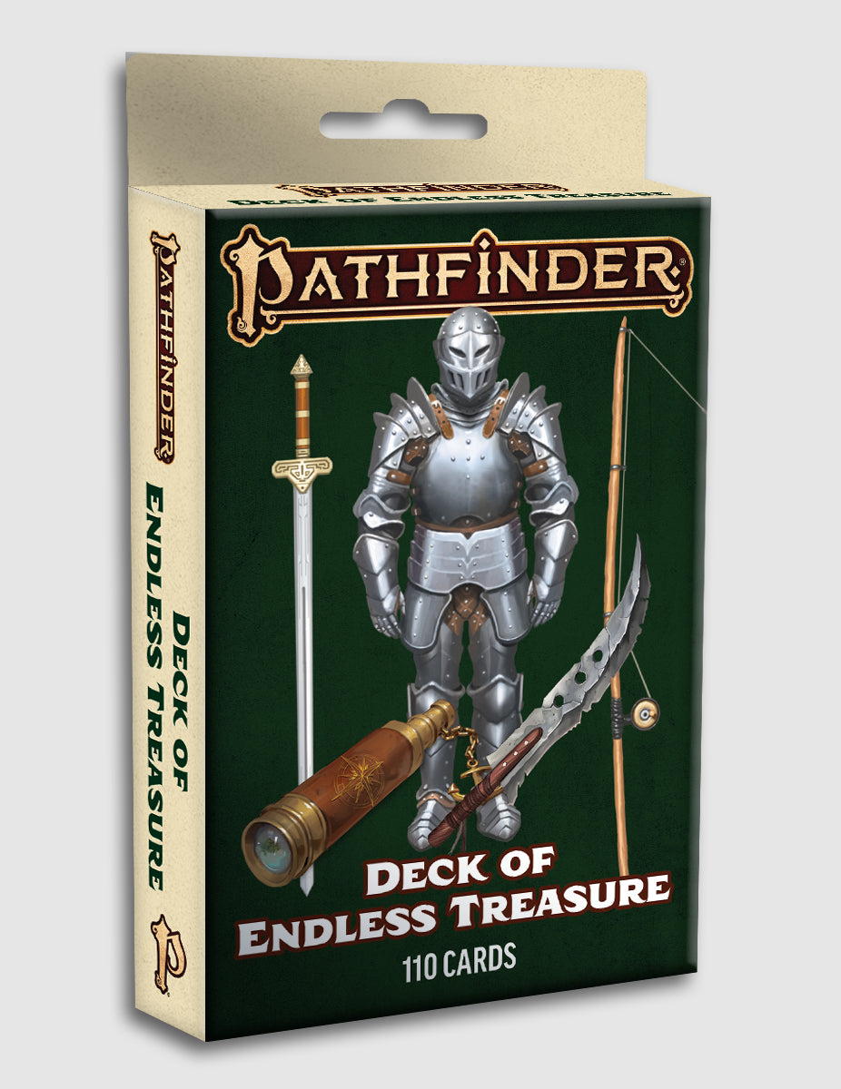 Fill any magic shop or dragon’s hoard with ease using the Deck of Endless Treasure! Draw and combine any four cards from this deck to generate a brand-new magic item ready for play, each with its own distinct powers, quirks, and story hooks. With over 100 million possible combinations, you’ll never be without a unique treasure for your game!