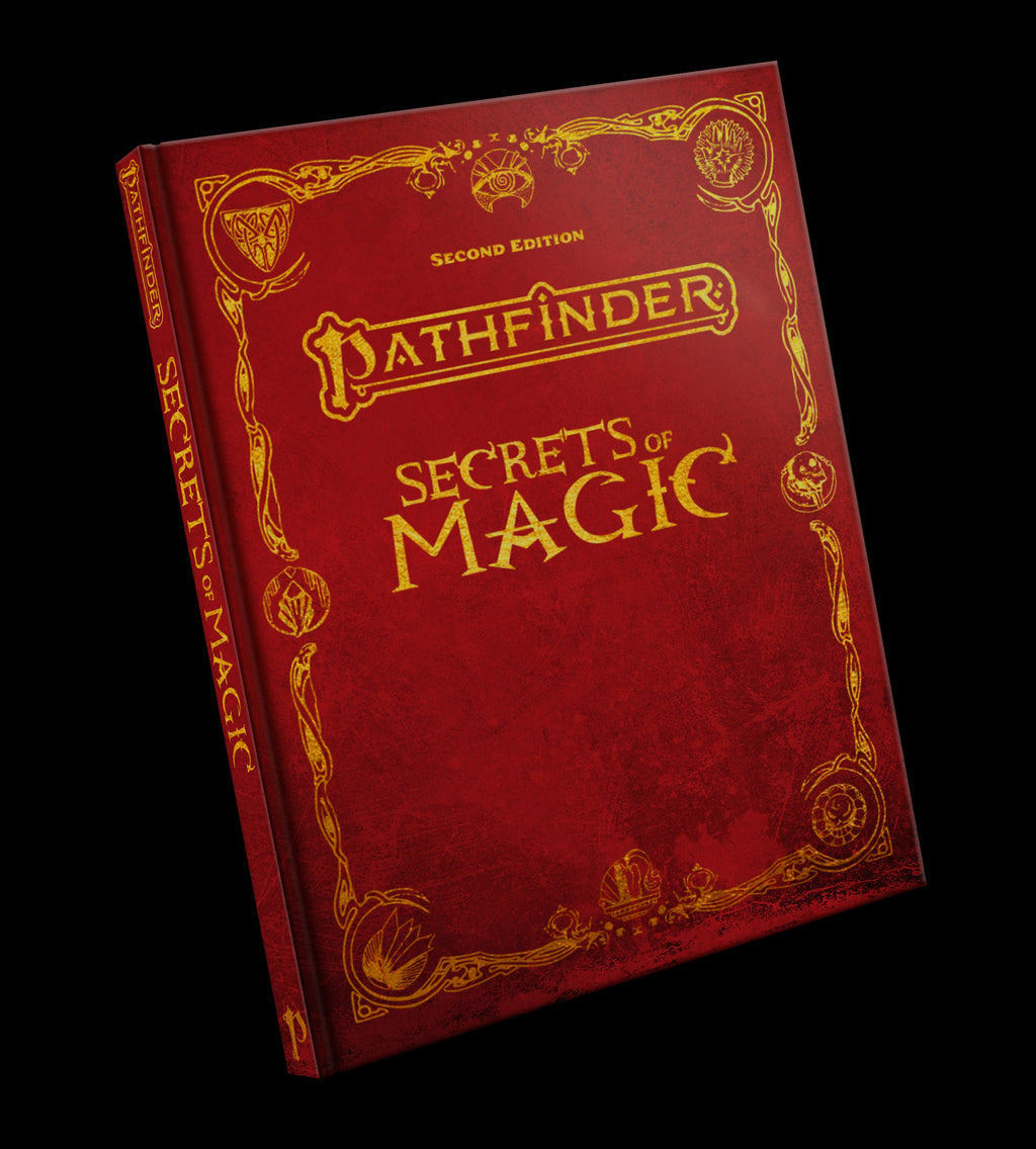Discover the untold potential of magic! Secrets of Magic, the newest hardcover rulebook for the Pathfinder Roleplaying Game! Secrets of Magic brings the popular magus and summoner classes into Pathfinder Second Edition, unlocking heroes who combine magical might with martial prowess and offering command of a powerful magical companion creature. The lavishly illustrated, 256-page rulebook contains hundreds of new spells with potent offerings for all spellcasting character classes, magic items for any player character, and lore detailing the fundamental structure and theories of magic. A special section within the volume—the Book of Unlimited Magic—presents new methods of spellcasting, with elementalism, geomancy, shadow magic, rune magic, and even pervasive magic to give every place and creature in your game a magical spin!