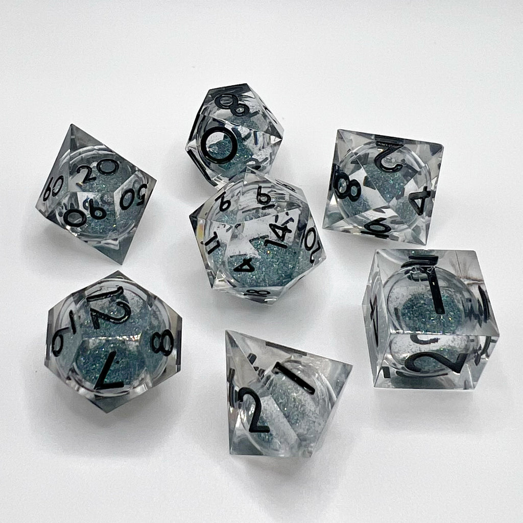 Quicksand Liquid Core Dice Set - Transparent Clear w/ Black