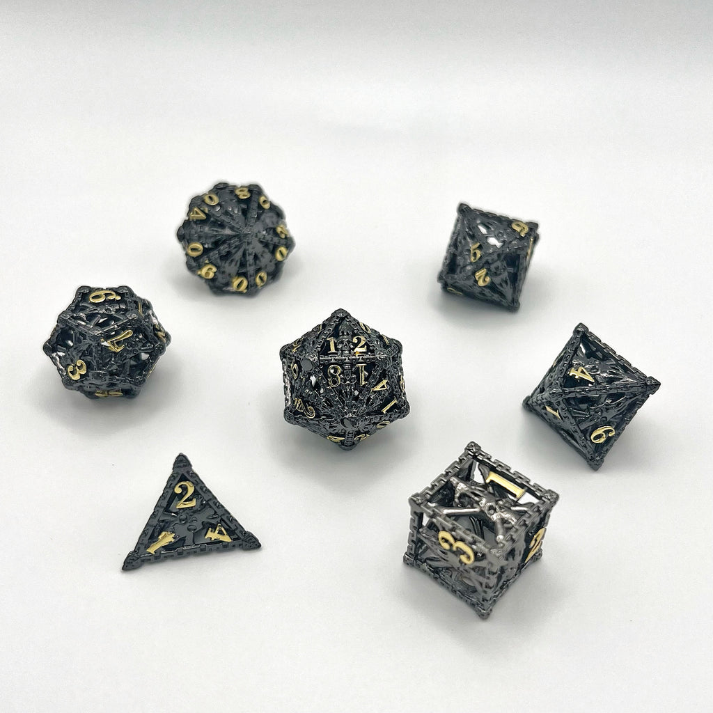 Skull Edge Hollow Metal Dice Set - Black w/ Gold