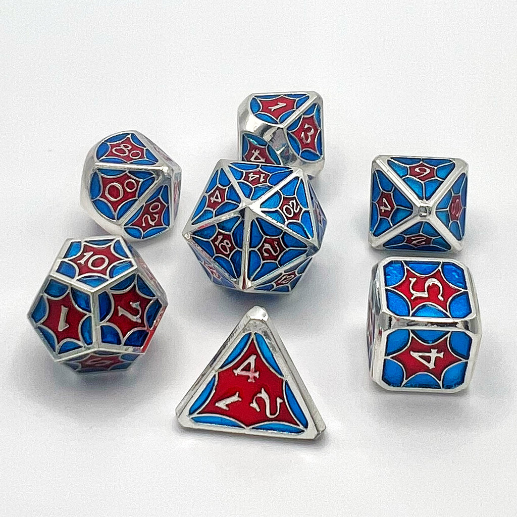 Spider Web Metal Dice Set - Blue/Red w/ Silver