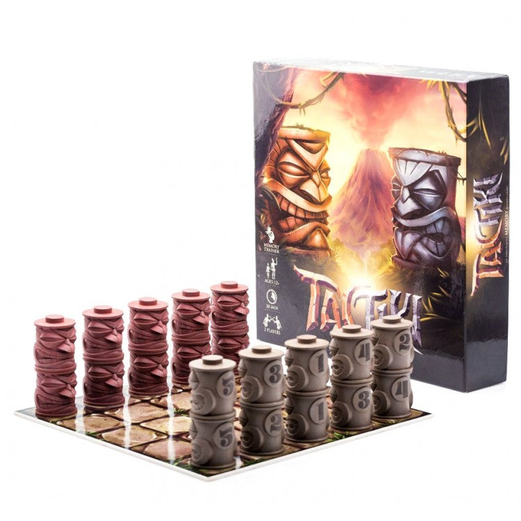 An innovative tactical strategy game for two players with a memory aspect and beautiful miniatures. Low Luck, Tactical 2 player game. A premium production including beautiful Tiki miniatures and a foam insert. Unlimited Replayability, players can change their setup every time creating a different game. A unique 3d twist in classic 2-player abstract games. Easy to Learn, Hard to Master. Learn how to play in 1 minute.