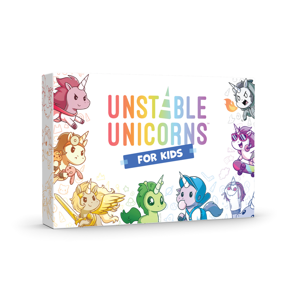Unstable Unicorns for Kids features eight Colorful Unicorn card themes, including Hero, Animal, Princess, Space, Sports, Goofy, Rainbow, and Fantasy. With cards like Sock Puppet Unicorn, Astronaut Unicorn, and Mermaid Princess Unicorn, the game has a unique unicorn (a uniquecorn, if you will) for everyone!